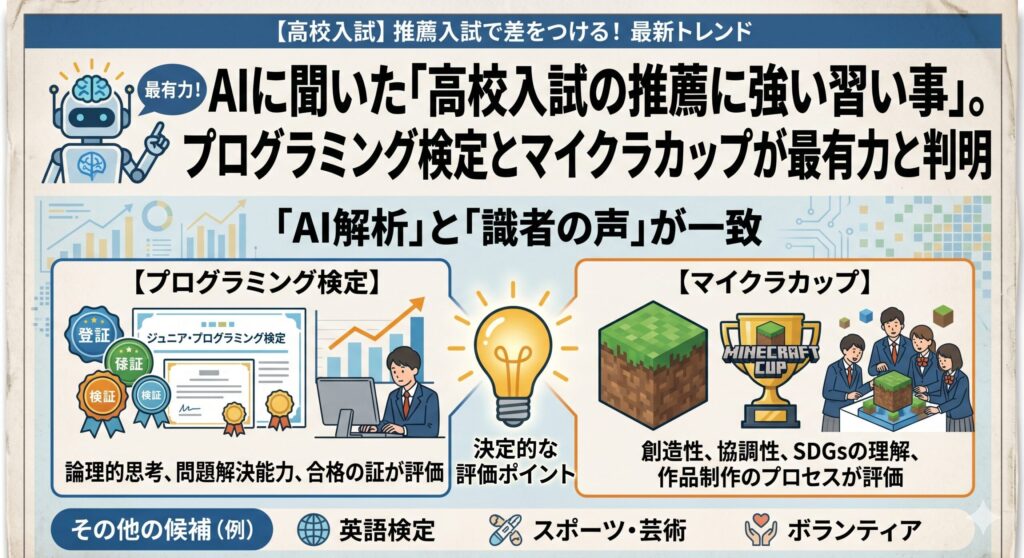 AIに聞いた「高校入試の推薦に強い習い事」。プログラミング検定とマイクラカップが最有力と判明