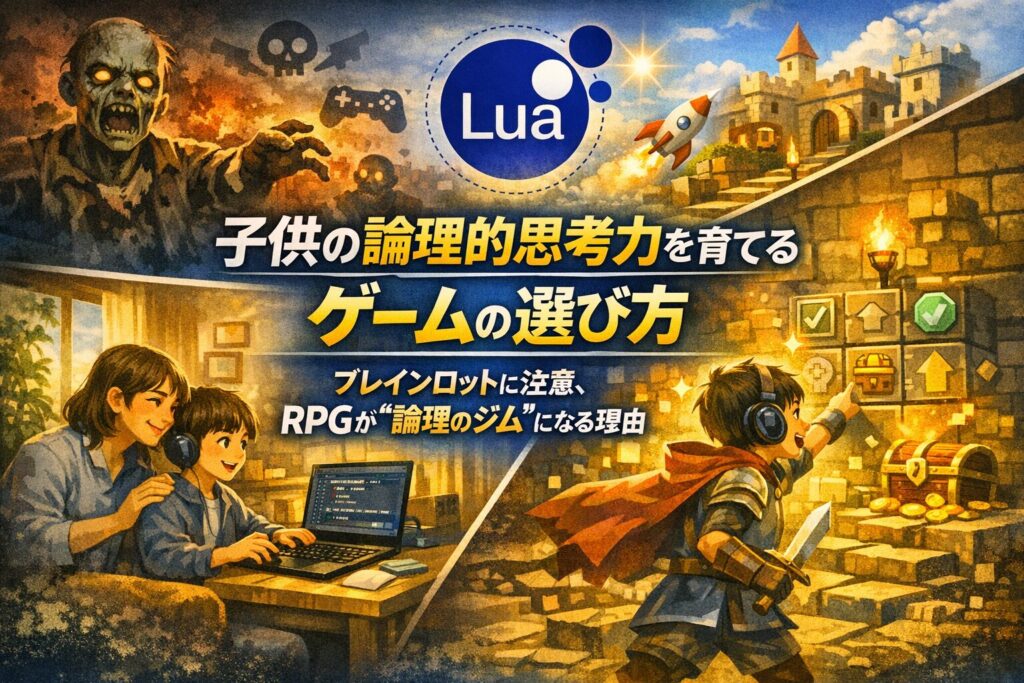 Robloxは「遊ぶ」のではなく「作る」方向へシフトすることで、本物の学びの場になります。Luaプログラミングによるゲーム開発は、まさに論理的思考力を直接鍛える活動です。Roblox StudioやPICO-8でゲームを作る体験についてはRoblox開発で使われるLuaを子供のうちから学ぶメリットの記事もあわせてご覧ください。