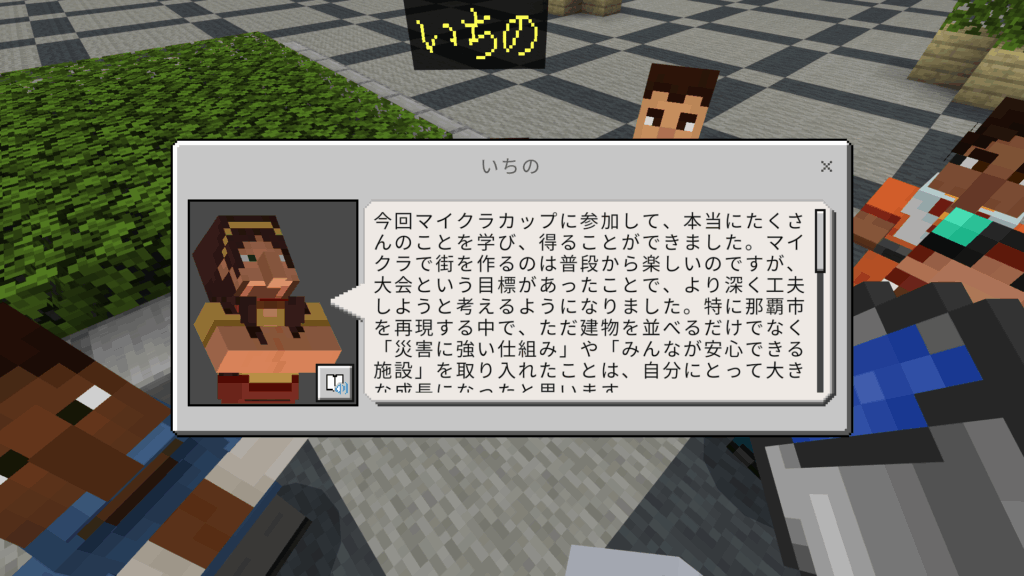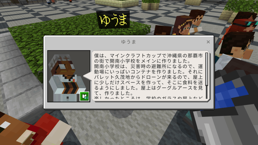 今回のマインクラフトカップで提出したワールドの中にはマイクラカップに参加した子供たちの感想が入っています。